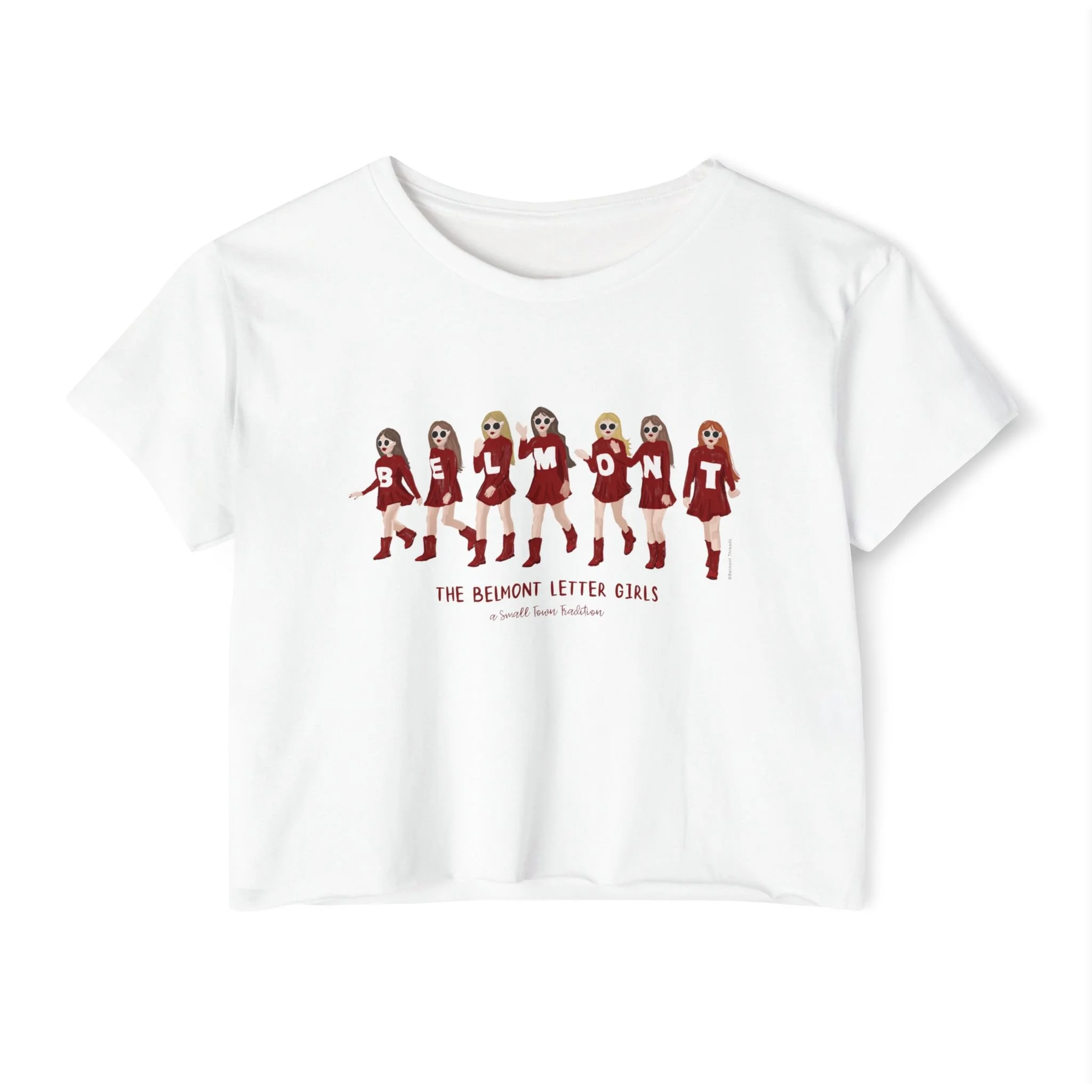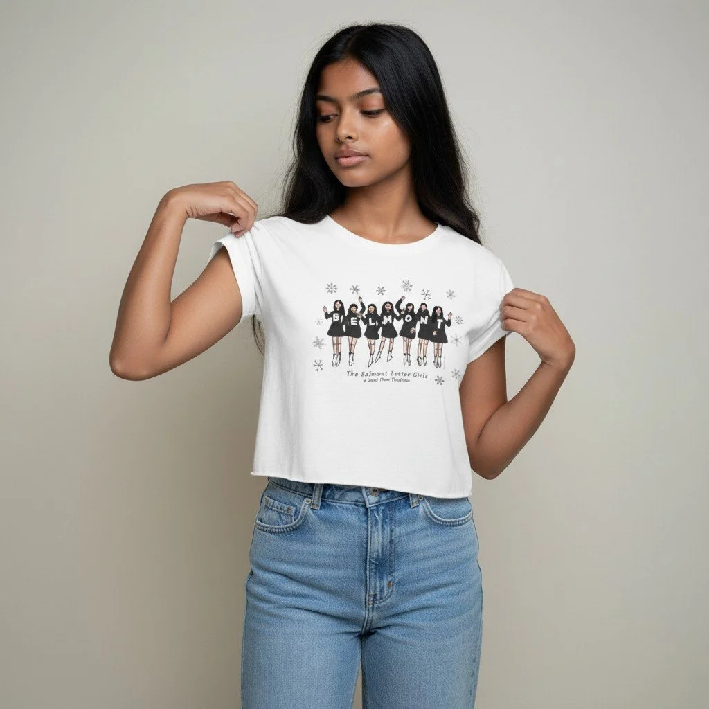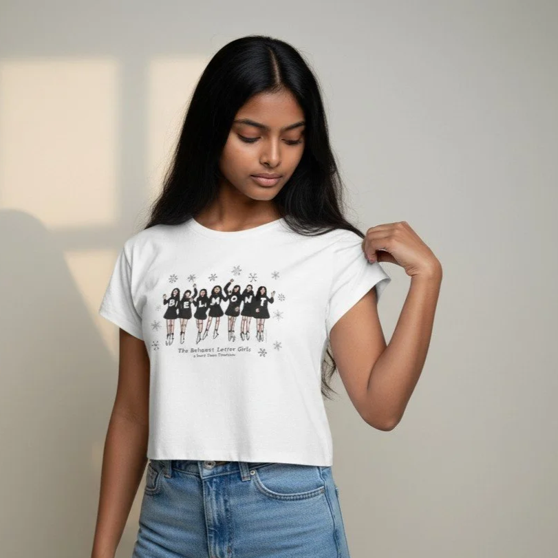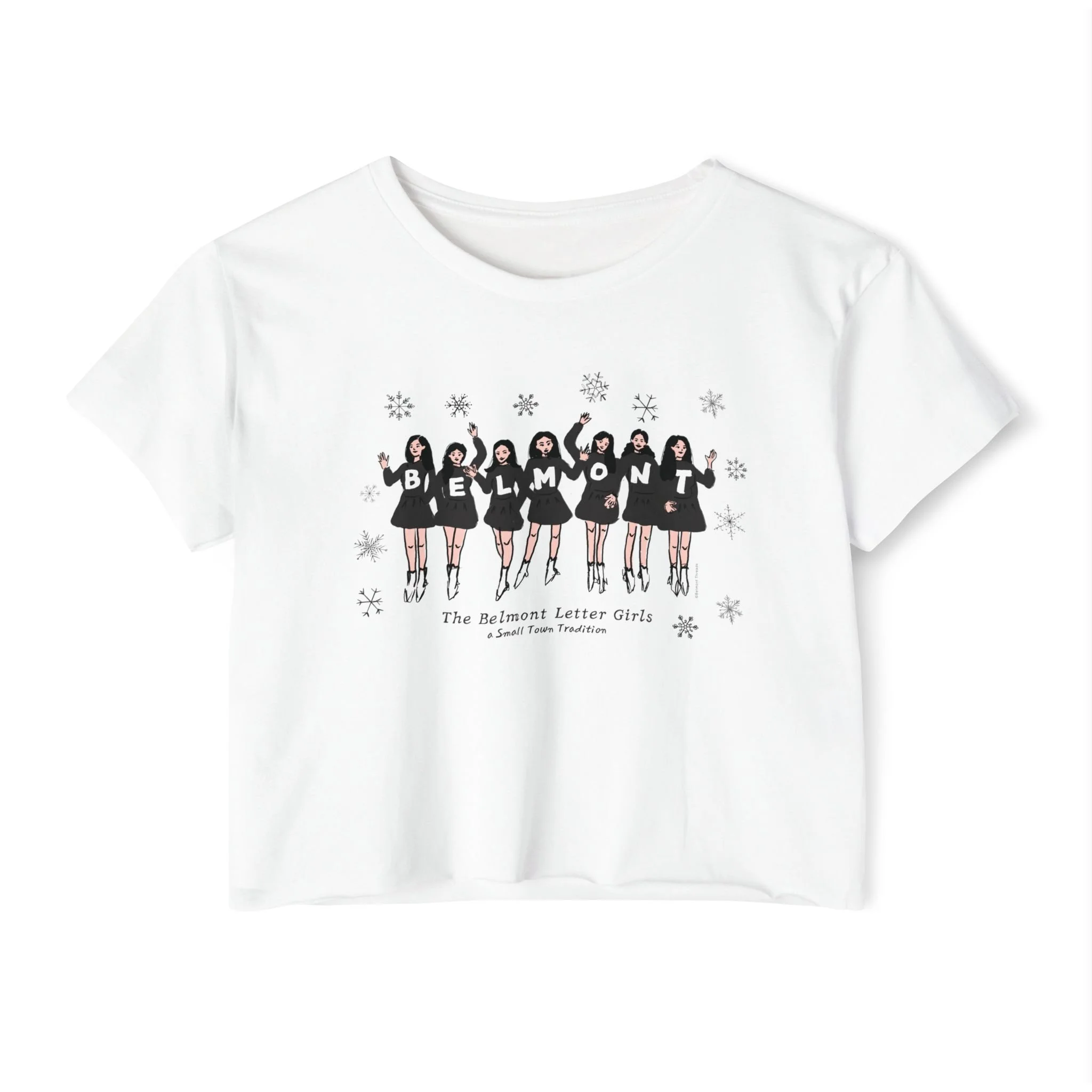 Belmont Letter Girls & Snowflakes Cropped T-Shirt