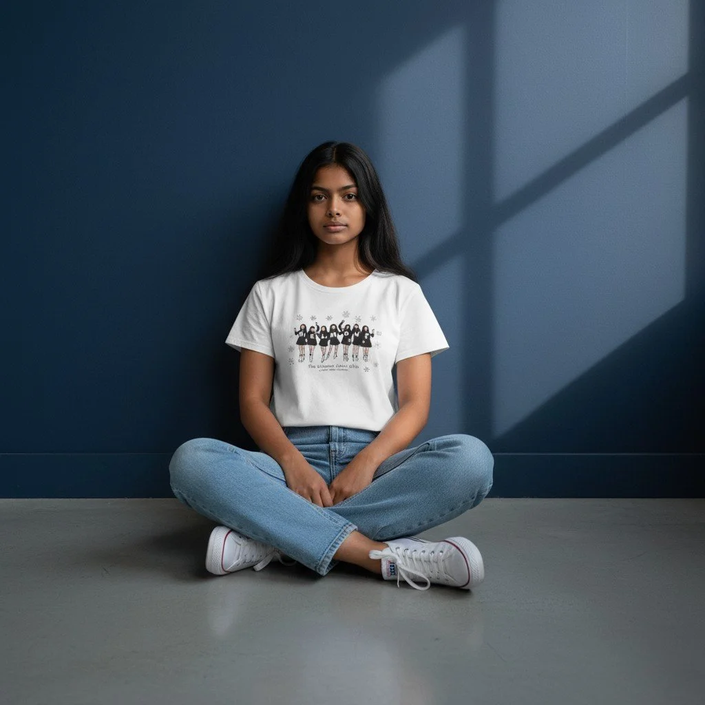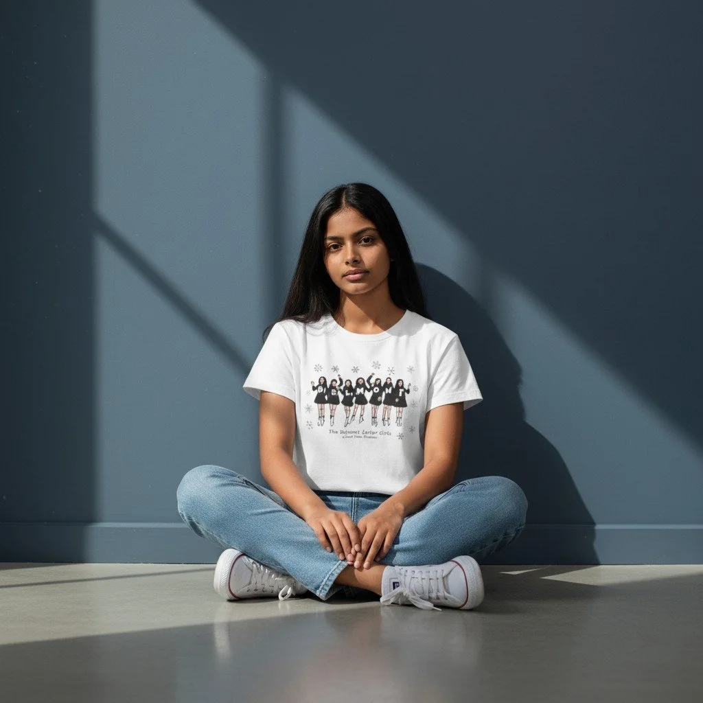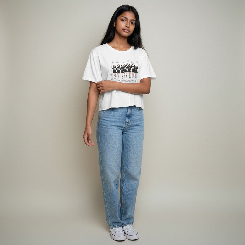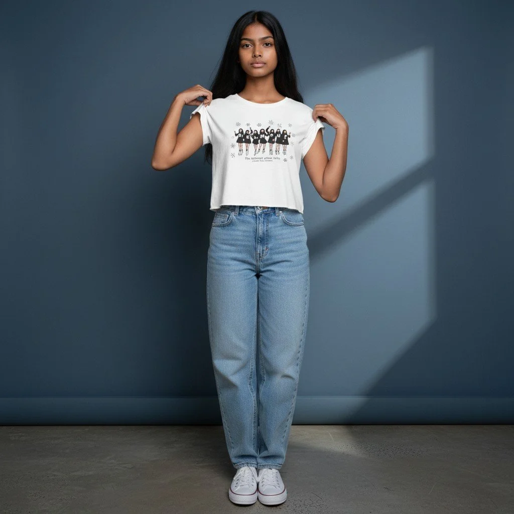 Belmont Letter Girls & Snowflakes Cropped T-Shirt