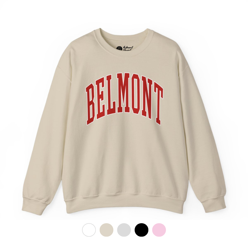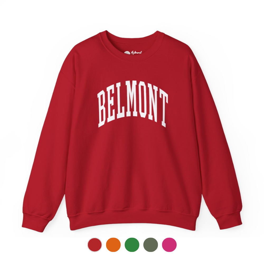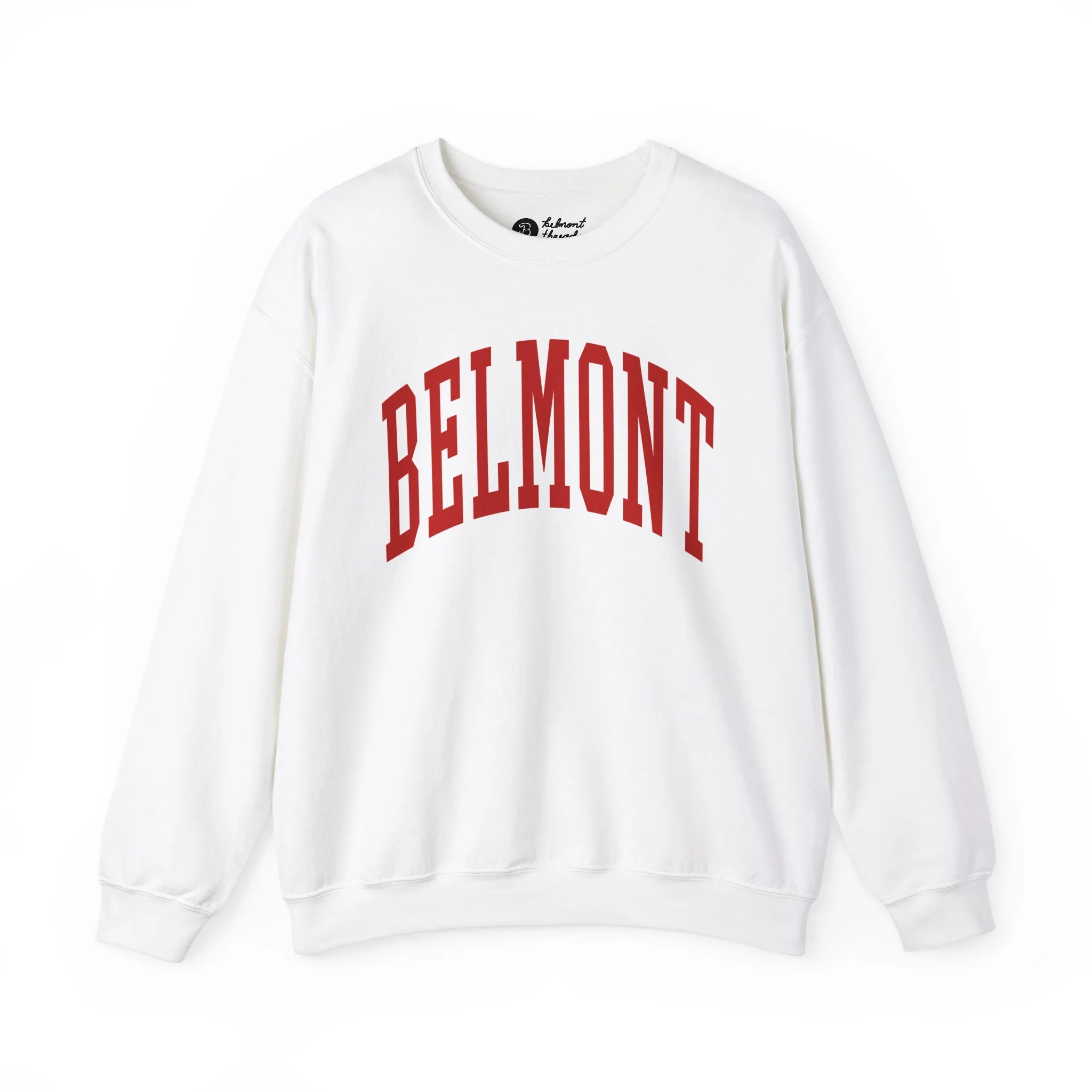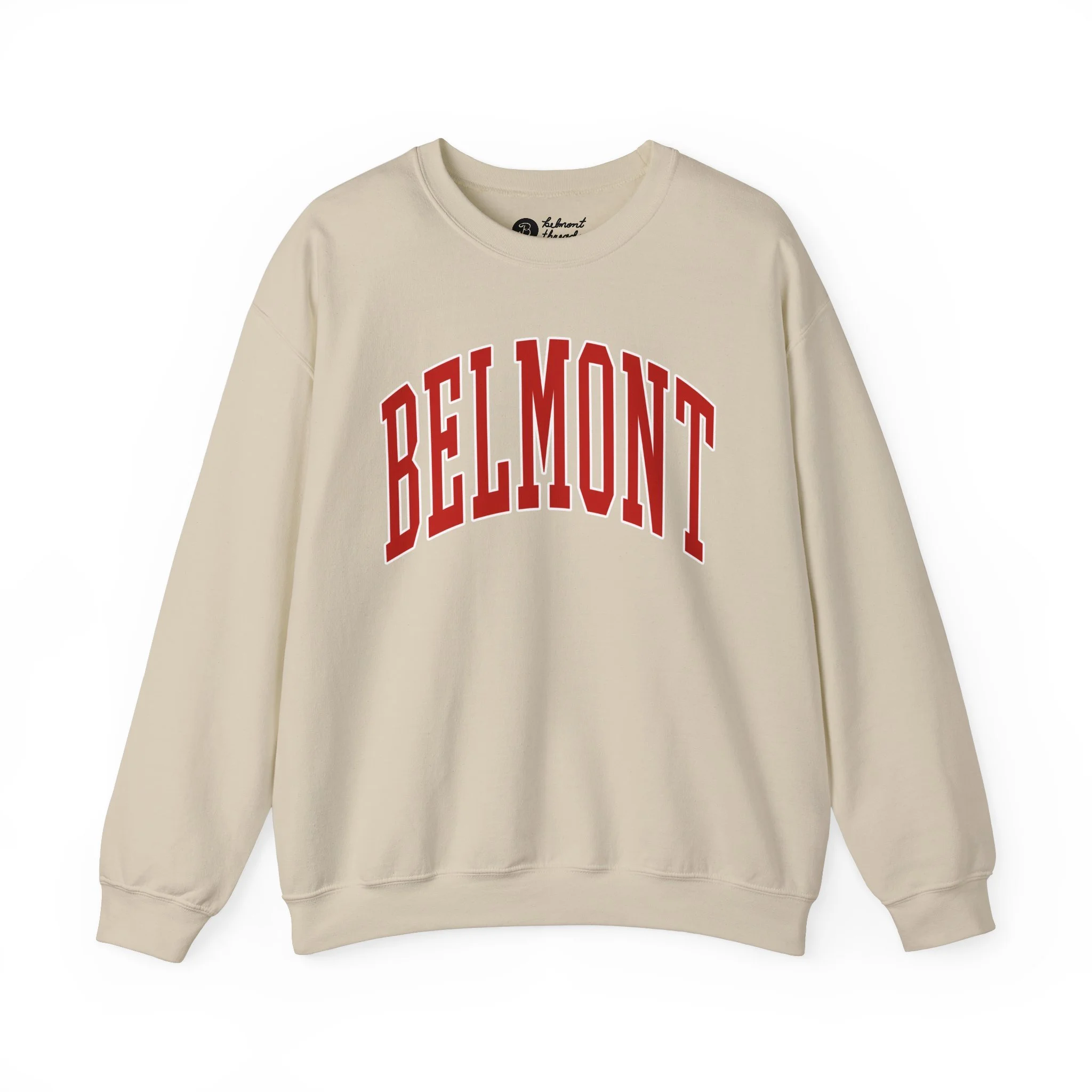 Belmont Varsity (Red Letters) Heavy Blend™ Crewneck Sweatshirt, Unisex Fit