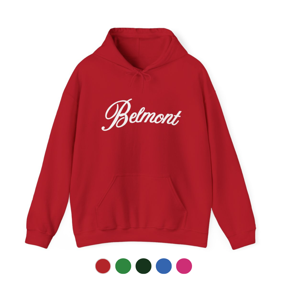 Belmont Cursive Hoodie, Unisex Fit - New Colors