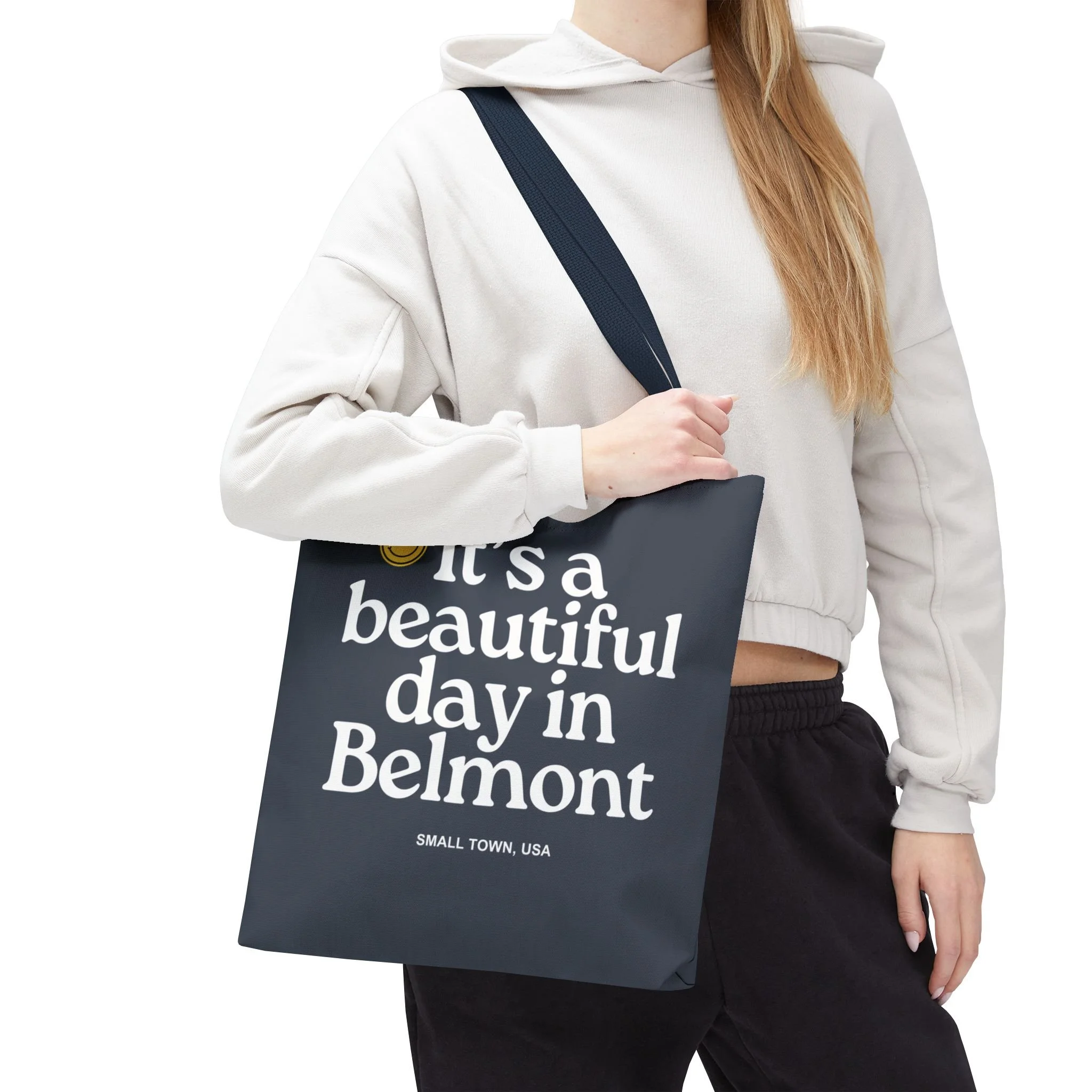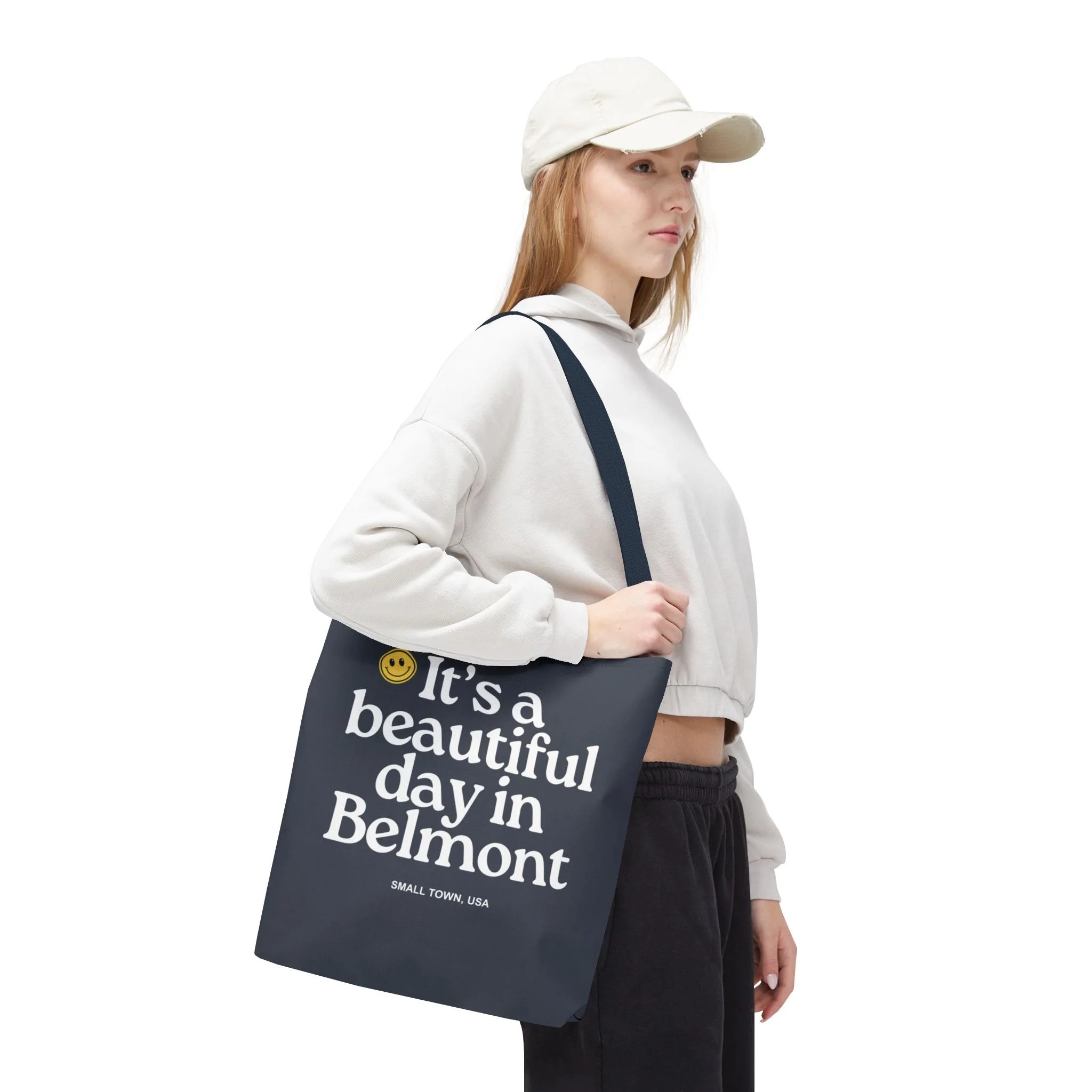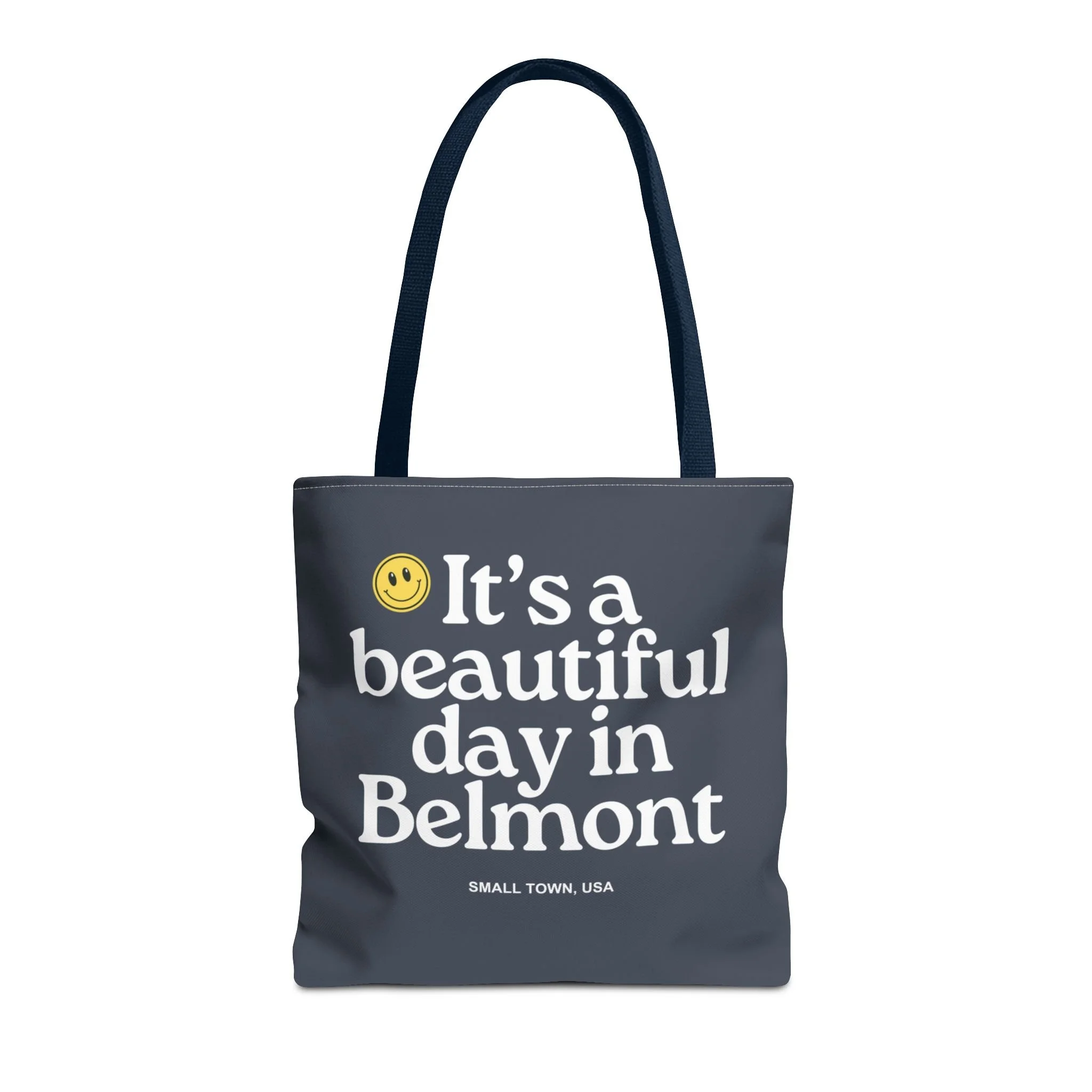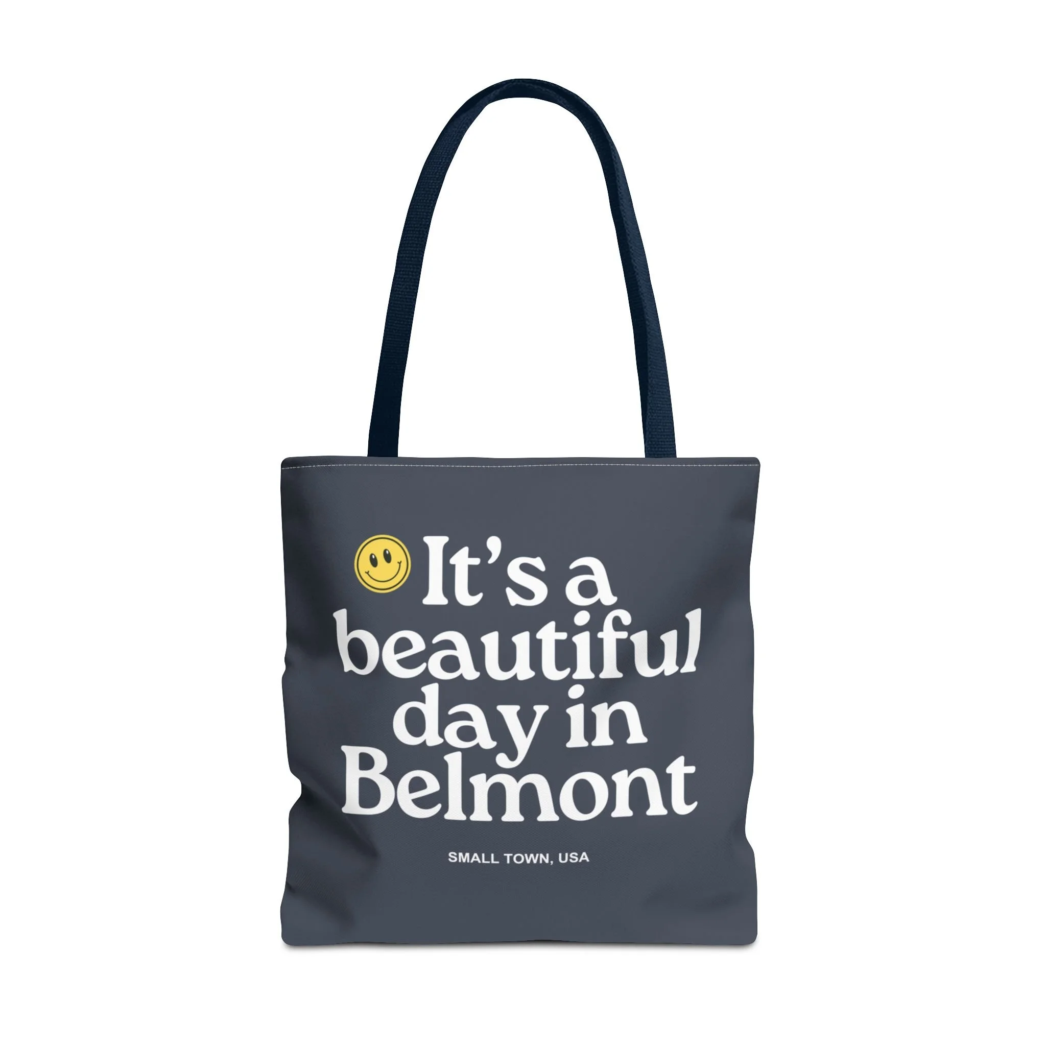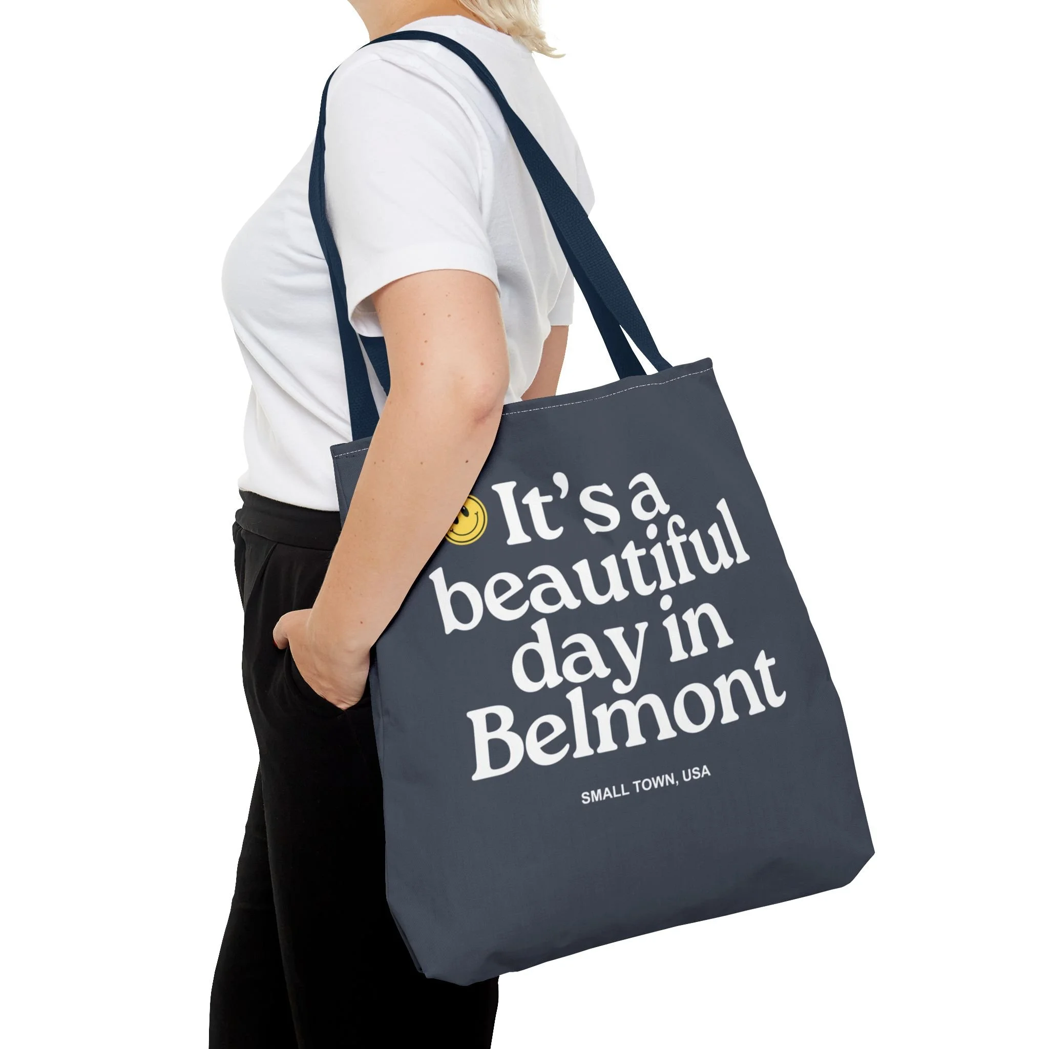 It’s a Beautiful Day in Belmont Tote, Navy Blue – Small Town, USA