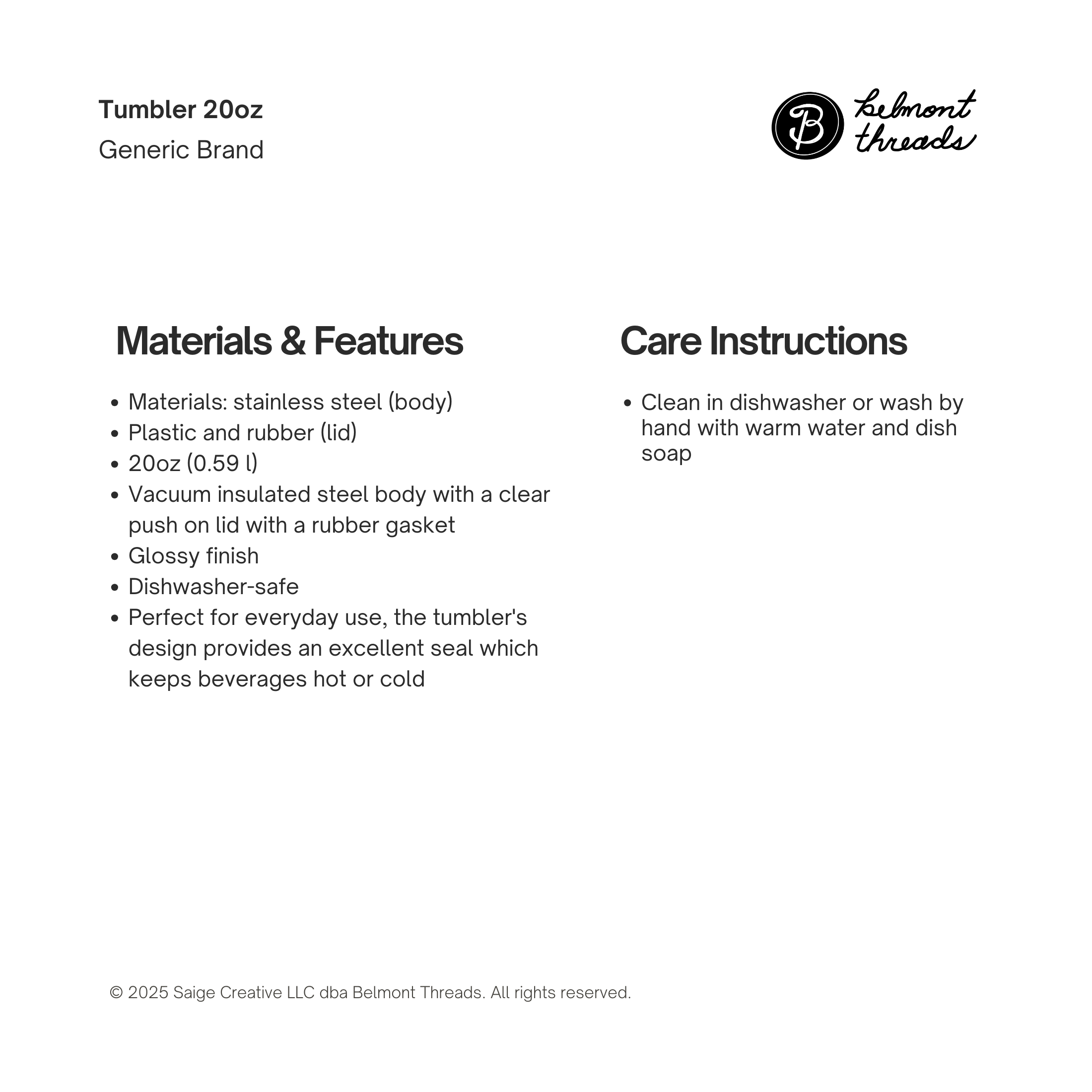 Beautiful Day in Belmont 20oz Matte Tumbler, Seaglass
