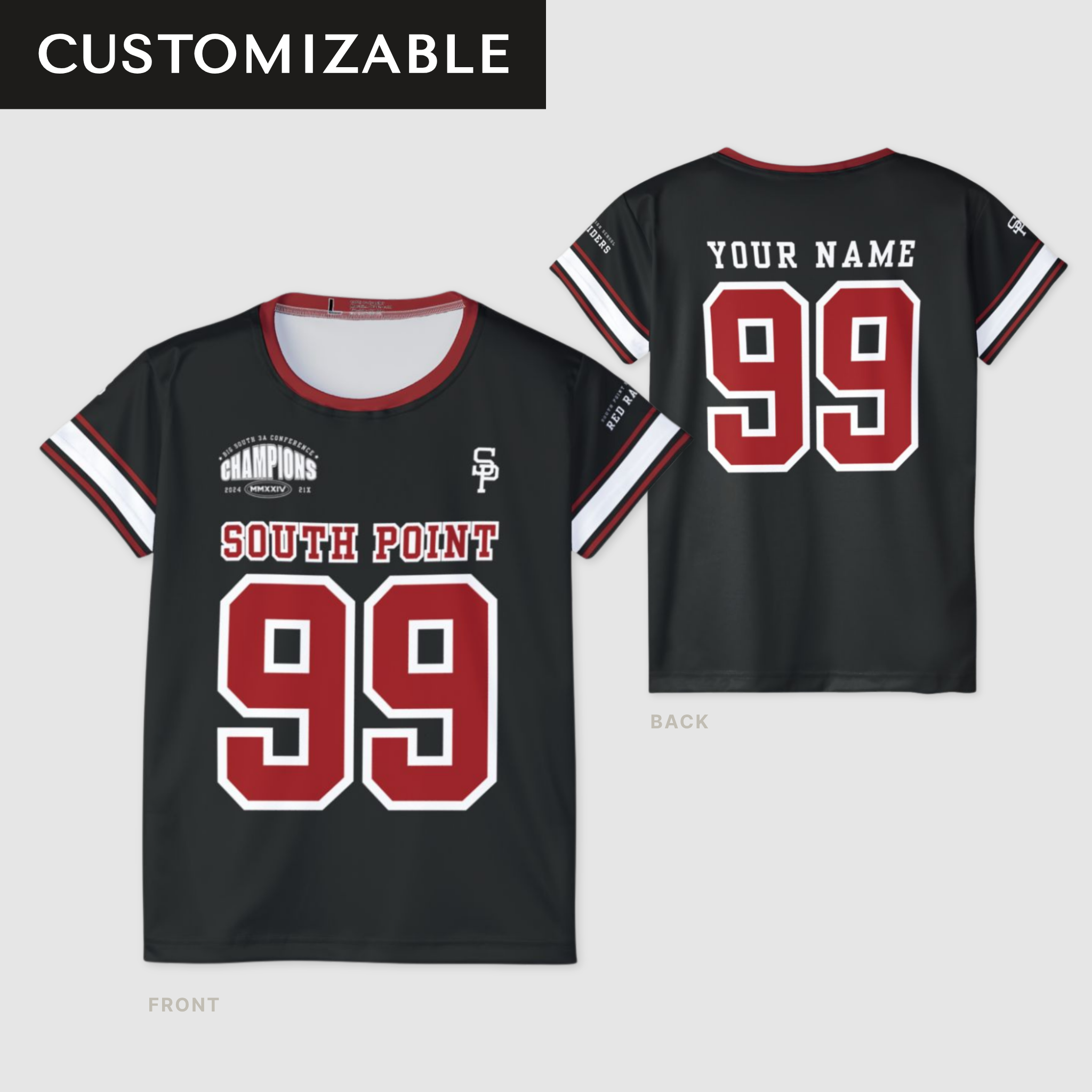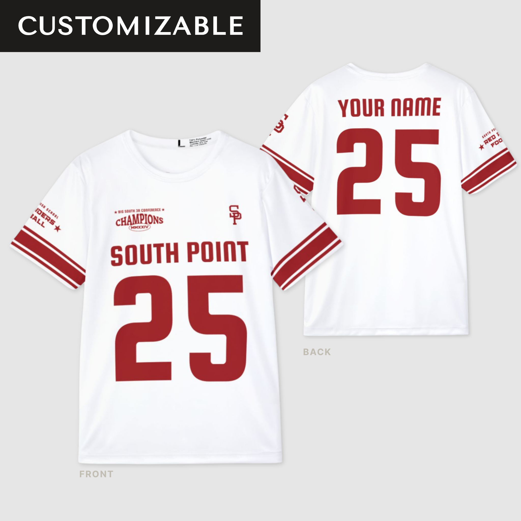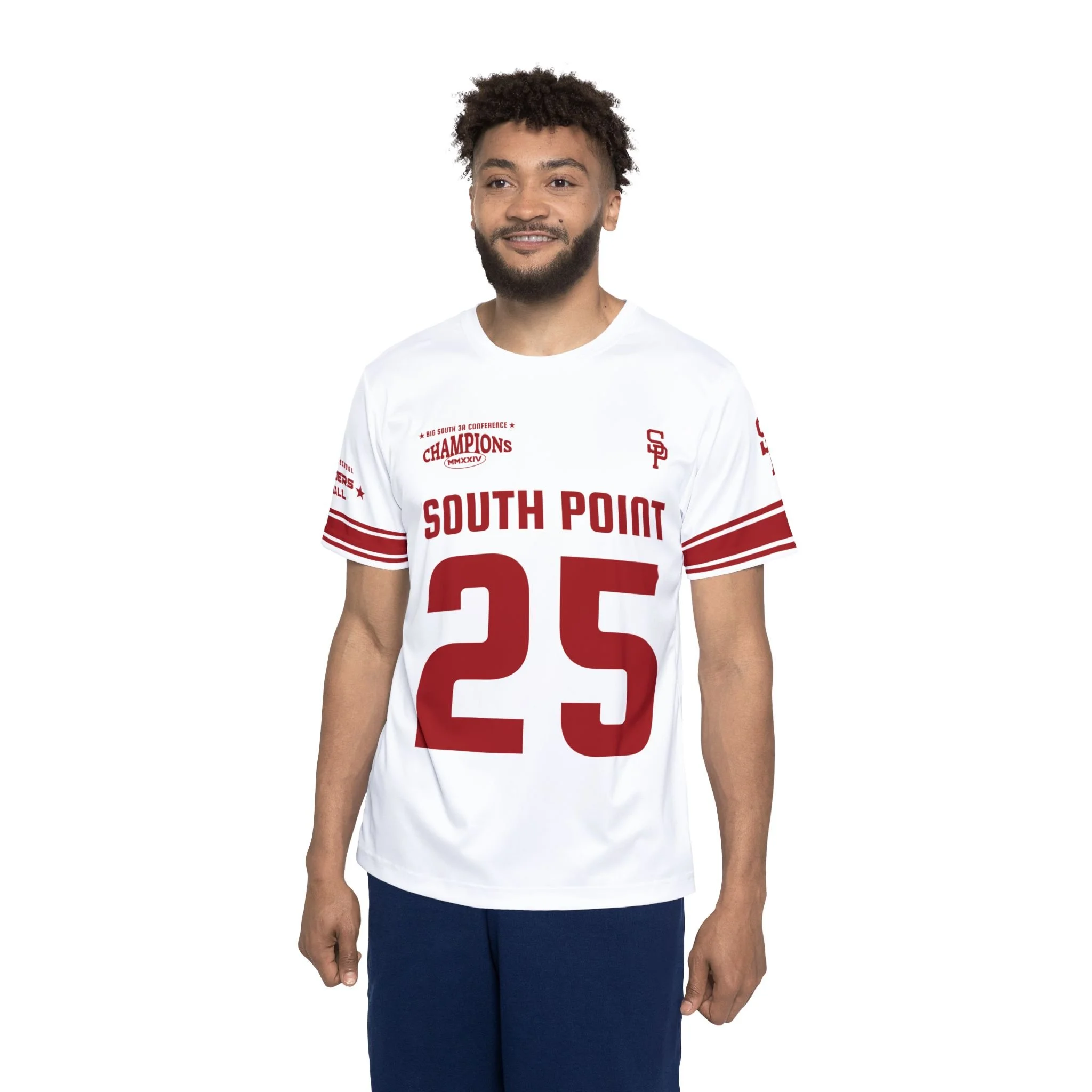 Whether you’re in the stands, at a tailgate, or repping your hometown pride around town, this Men’s South Point Football Jersey brings championship energy to every occasion. Designed for comfort and standout style, it features bold varsity graphics, double sleeve stripes, and custom name and number options for a true fan favorite.